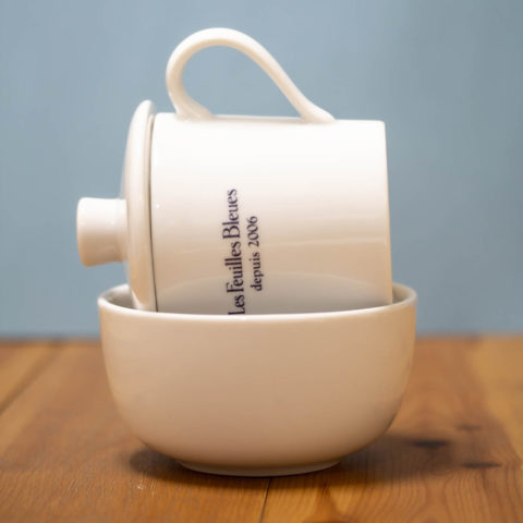 マグカップは、非売品として制作したフィーユ・ブルー特製。限定数で作られたものとなります。サイズも推奨湯量(160㏄~200㏄)でちょうどよい大きさとなりますので、計量を気にせずお使いいただけます。
