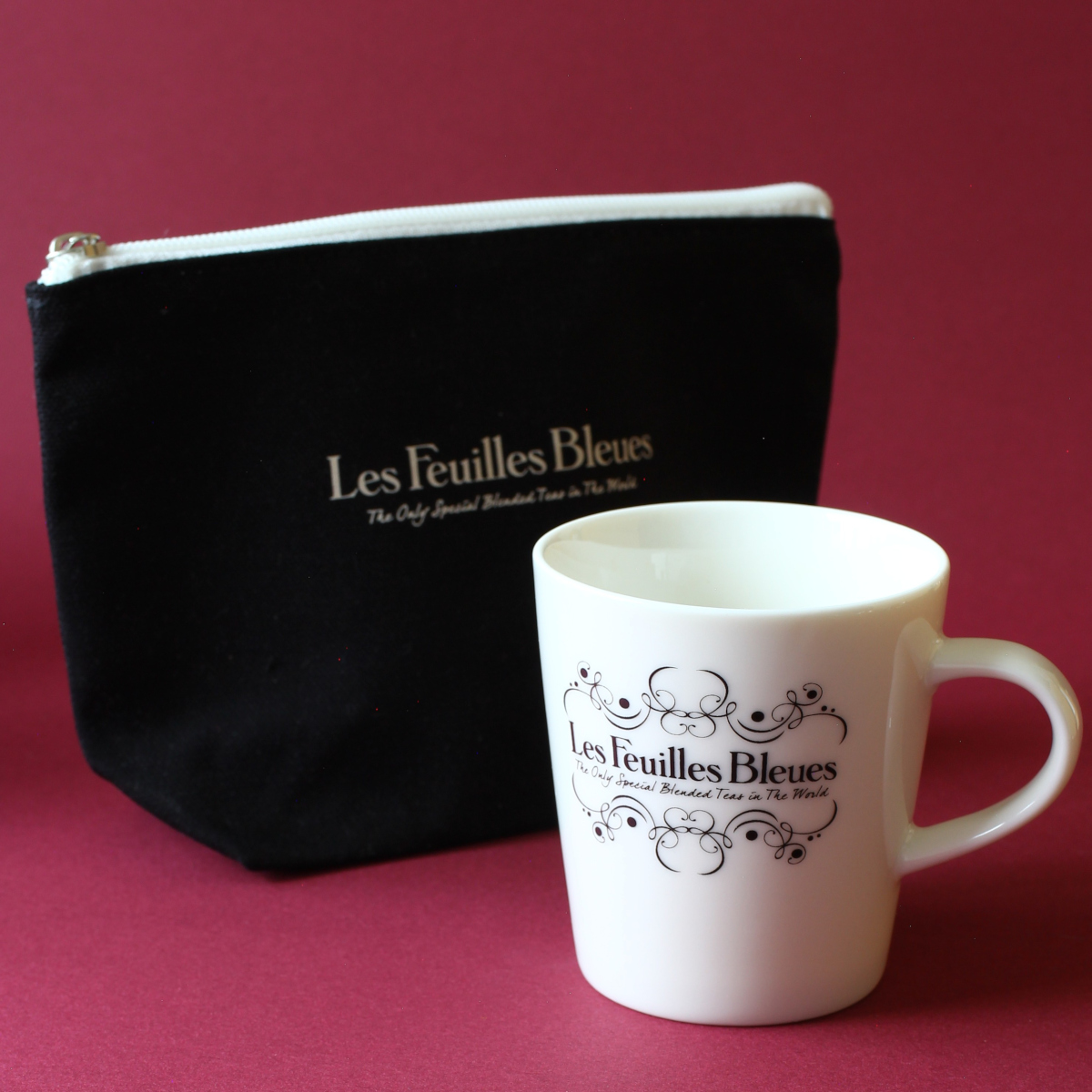この冬の新商品、特別商品とフィーユ・ブルーの代表的ブレンド「パルフェタムール」と「セレブレーション」のミニギフトボックス、さらにオリジナルのテイスティングカップかマグカップ&ポーチが選べる特別セットです。