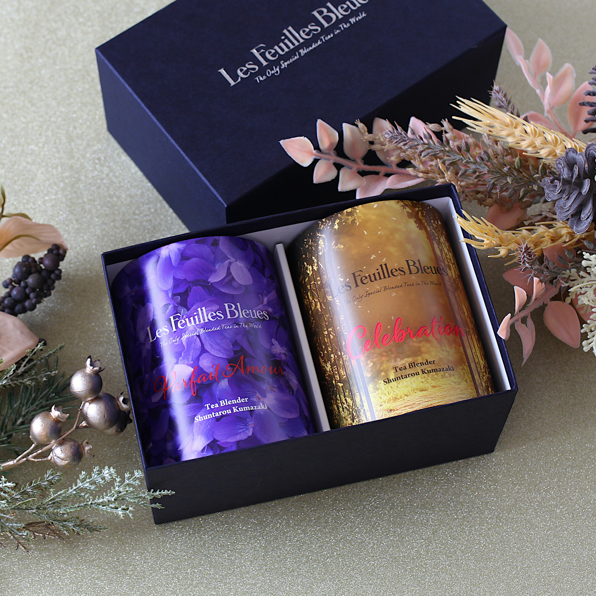 ティータイムをより華やかにしてくれる、フィーユ・ブルーオリジナルの2缶ギフトボックスです。